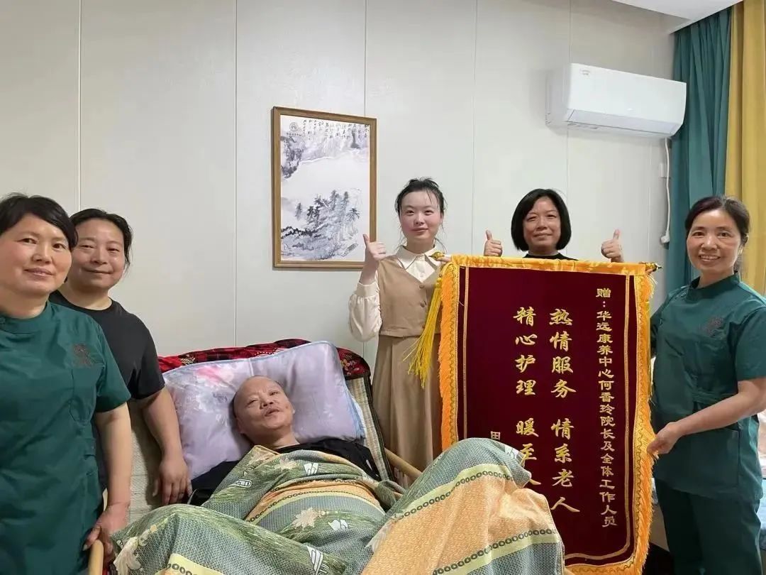 看到父親開朗的笑顏、從消瘦到有肉肉的身體、逐漸穩(wěn)定的血糖和血壓,作為女兒的小田的也慢慢覺得放心和慶幸。放心的把父親放在華遠康養(yǎng)中心照料,慶幸自己當(dāng)初的選擇沒有錯。于是在天朗氣清的四月,她帶著一面紅彤彤的錦旗敲響了院長辦公室的門。