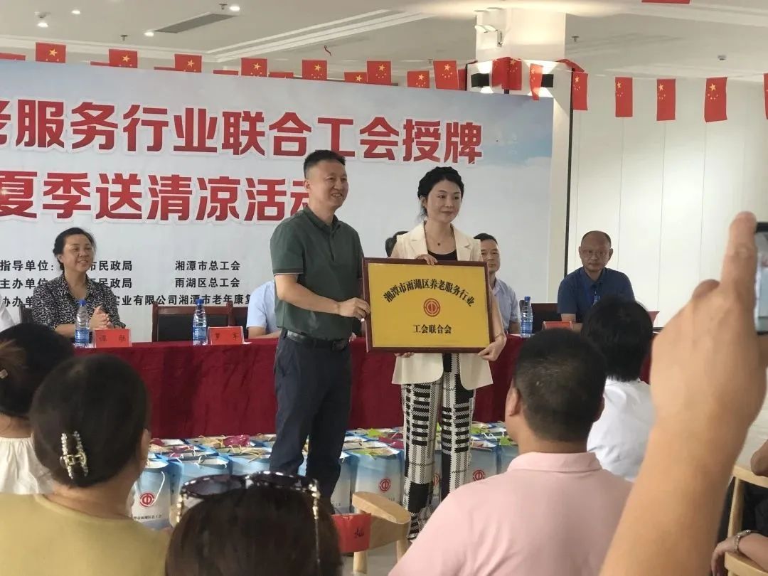 雨湖區(qū)養(yǎng)老服務(wù)行業(yè)聯(lián)合工會(huì)舉行授牌儀式,華遠(yuǎn)康養(yǎng)中心法人譚燦任工會(huì)主席